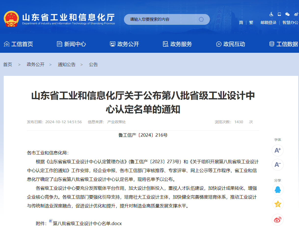 Recently, the Department of Industry and Information Technology of Shandong Province announced the eighth batch of provincial-level industrial design center certification list. Through procedures such as enterprise application, review and recommendation by various municipal departments of industry and information technology, expert evaluation, and online publicity, Haidriver has successfully obtained the qualification recognition of "Provincial Industrial Design Center".